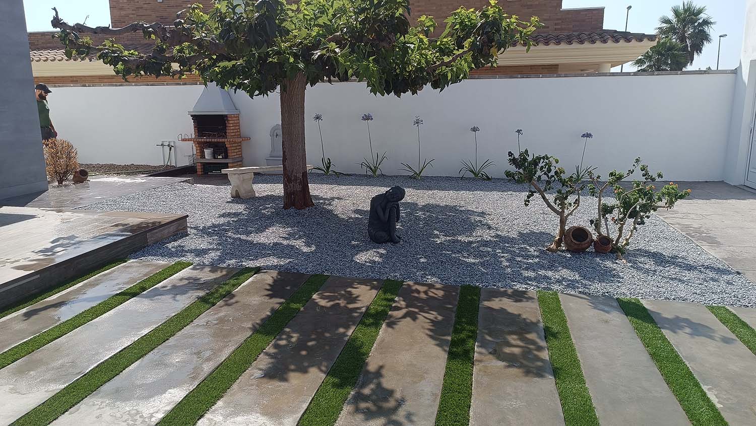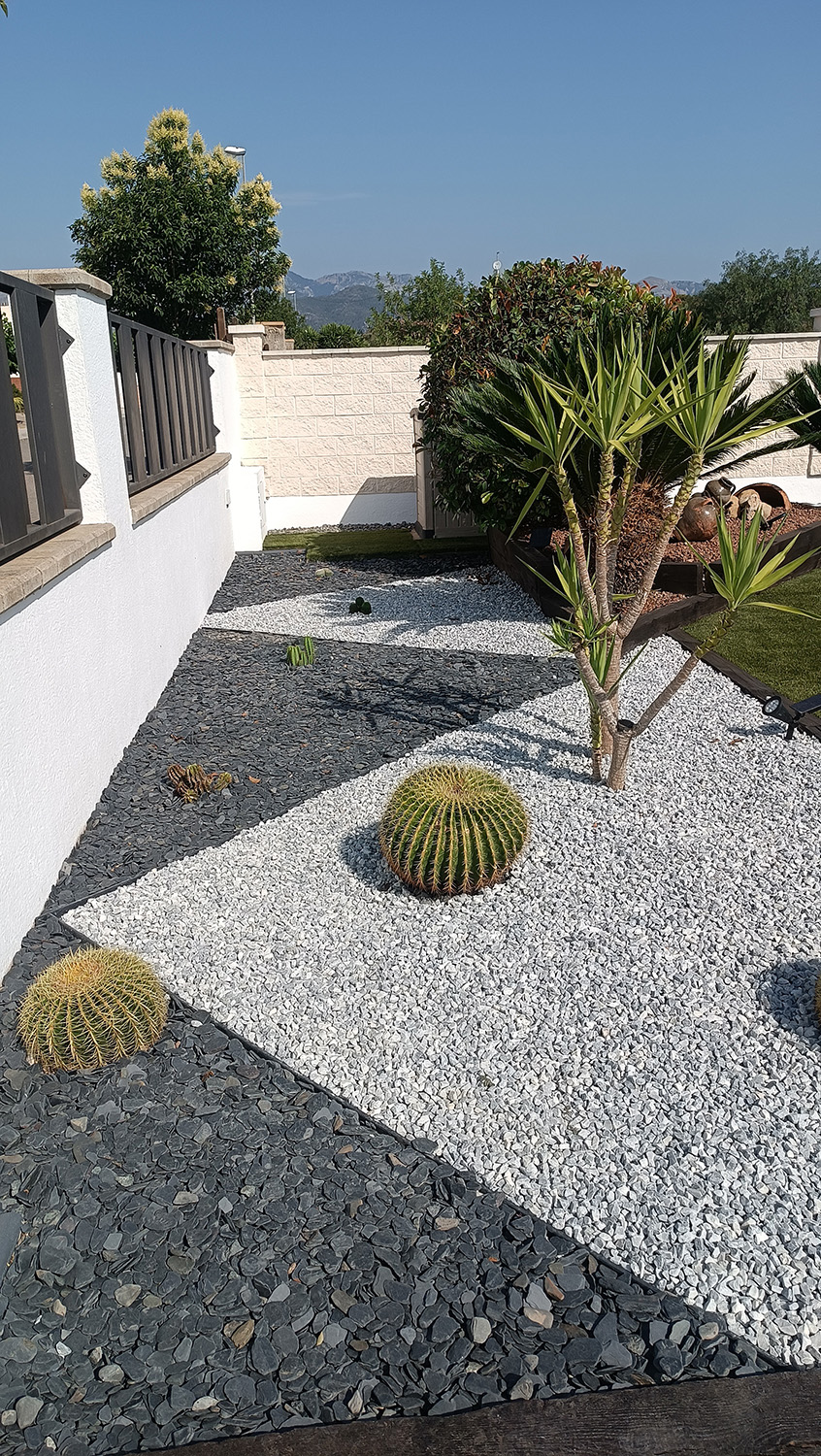 La jardineria moderna ens ensenya que és possible tindre un espai exterior exuberant i ple de vida fent un ús responsable dels recursos hídrics. En este projecte, ens hem centrat a crear un disseny basat en la xerojardineria, on els elements minerals com la pedra de riu i la grava volcànica prenen el protagonisme per a oferir un manteniment pràcticament nul i una estètica impecable.