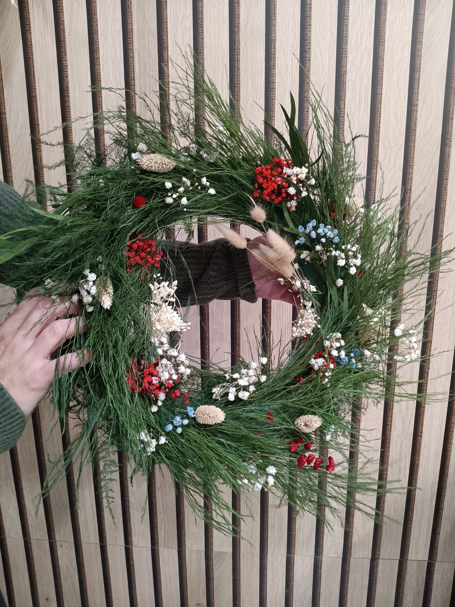 Quan fem una corona de Nadal amb flor preservada, estem creant un regal que no té data de caducitat. En el taller ens centrem en el disseny i en saber tractar estos materials tan especials per a que aguanten el pas del temps amb tot el seu esplendor.